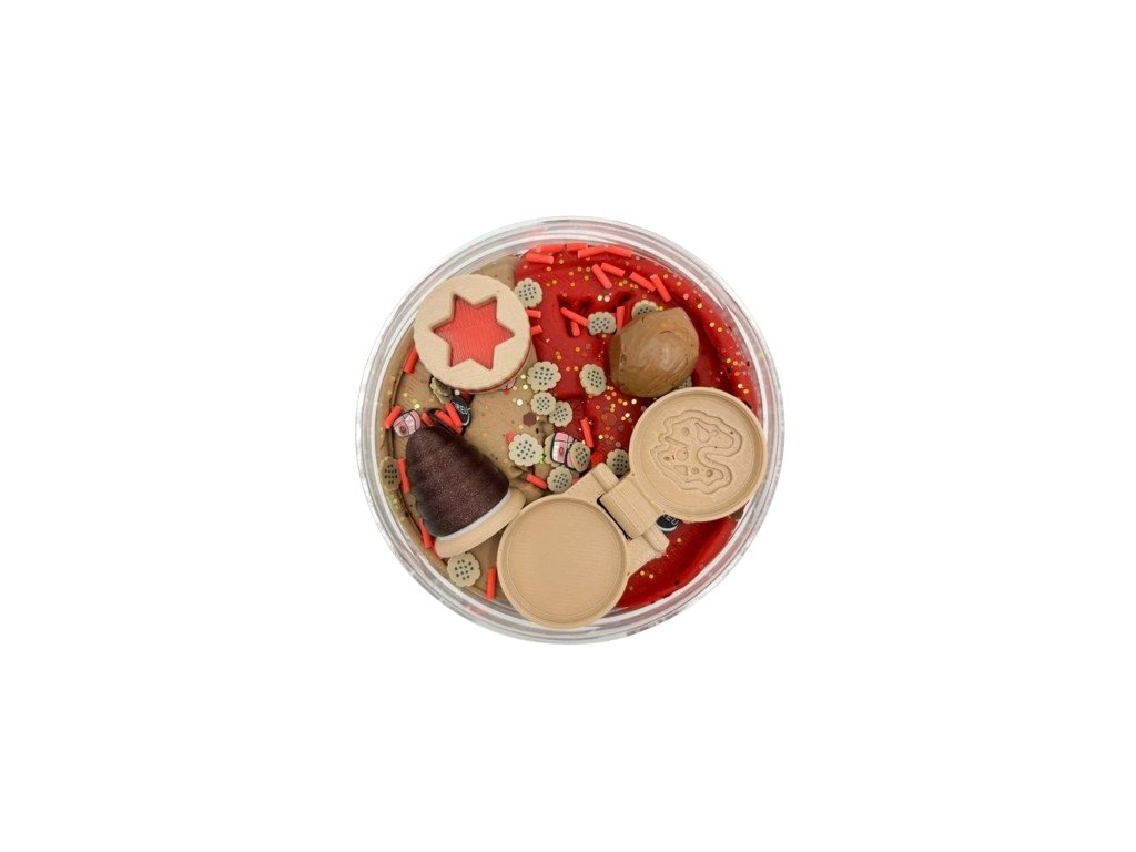 Voňavá a měkkoučká dvoubarevná domácí modelína s třpytkami, konfetami, eco vosím úlem, eco lineckým cukrovím, oříškem, eco tvořítkem na cukroví.