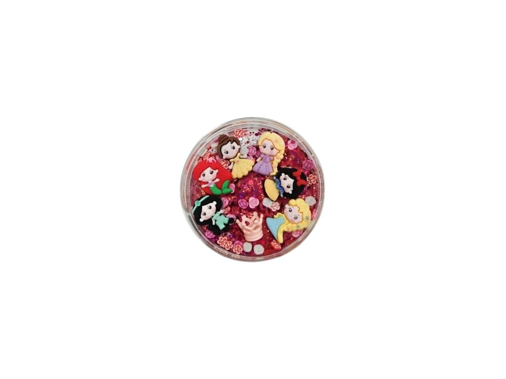 Voňavá a měkkoučká domácí modelína mixovaná ze tří barev s třpytkami, konfetami, 6 ks dekorací princezen a korunkou.