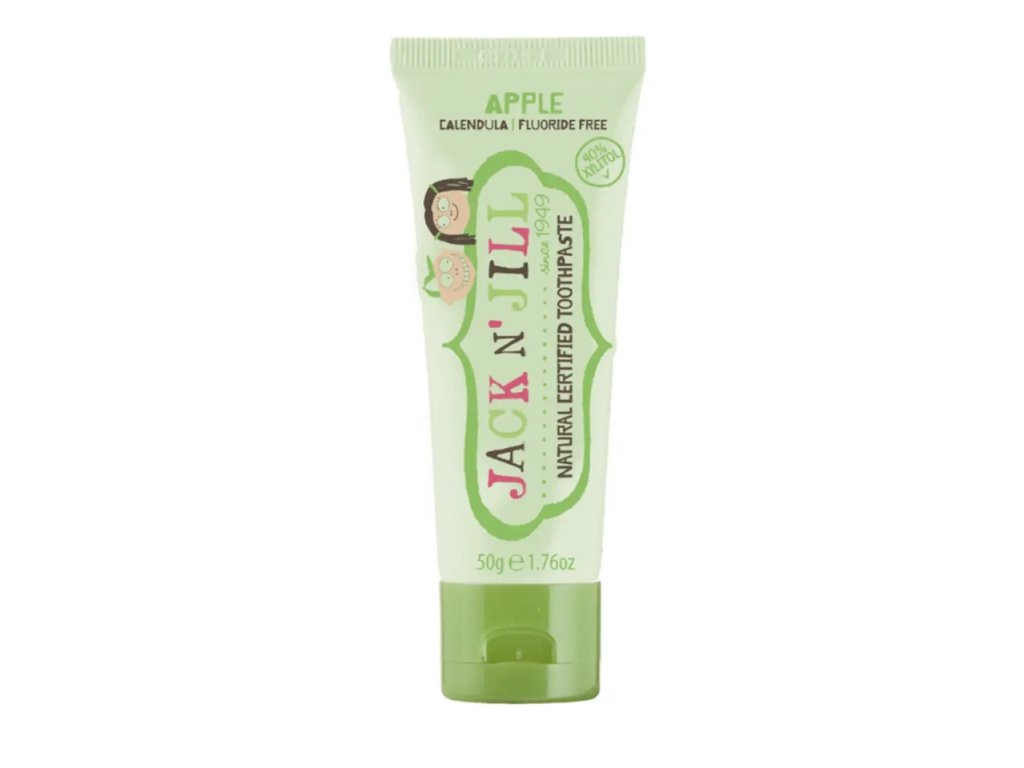 Přírodní zubní pasta s příchutí jablka vhodná pro děti od šesti měsíců.