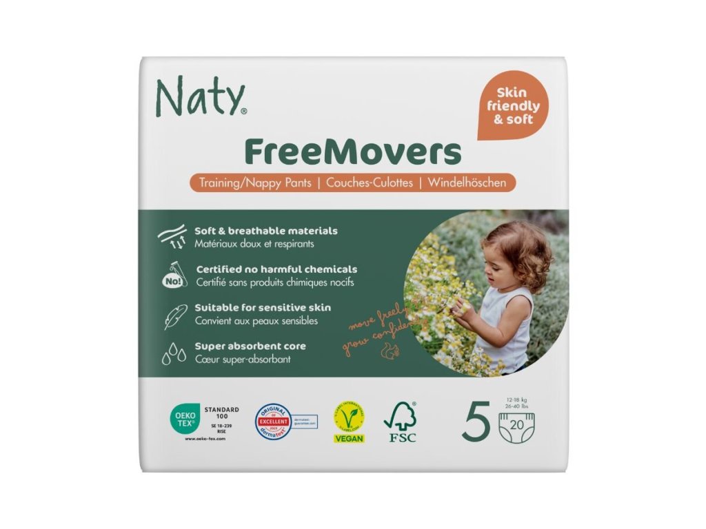 Natahovací plenkové kalhotky pro děti o hmotnosti 12 - 18 kg, jemné na dotek, vysoce savé a navíc šetrné k přírodě. Větší část plenky je vyrobena z lehce rozložitelných přírodních látek, tedy se rozkládá mnohem snáze než plastová plenka. Používá se biologicky odbouratelná celulóza.