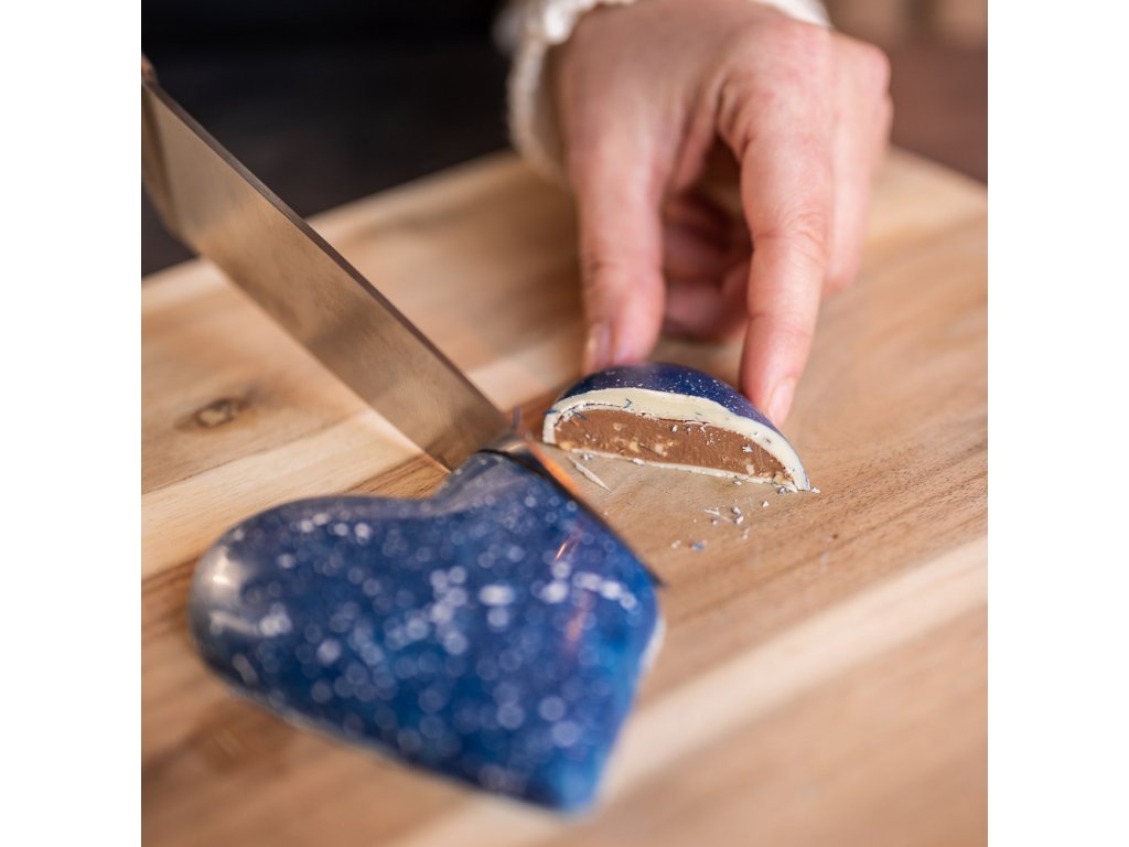 Velké čokoládové modré srdce plněné lískovkou - crunchy