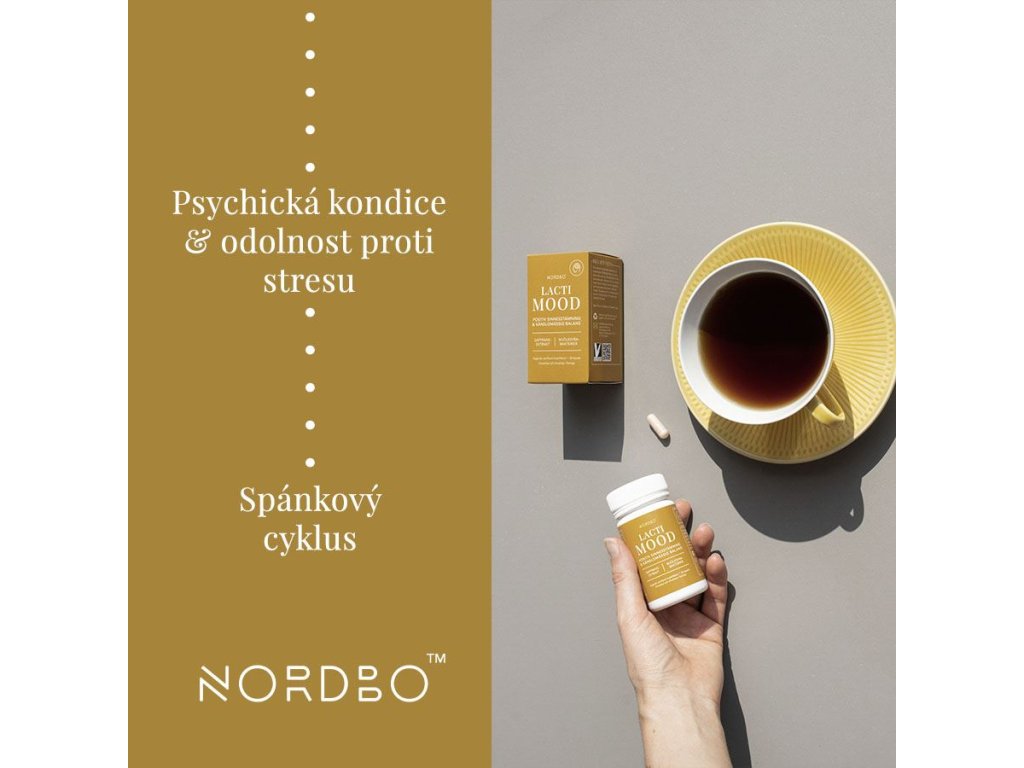 Lacti Mood obsahuje dva probiotické kmeny ProbioStress® Zen doplněné o extrakt z šafránu Saffr´Activ® s účinnými látkami crocin a safranal. Tyto látky mají společné vlastnosti spojené s hladinou serotoninu a dopaminu, a také kvalitou spánku. Je vhodný pro podporu psychické kondice a odolnosti proti stresu. Obsahuje 4 miliardy živých kultur.