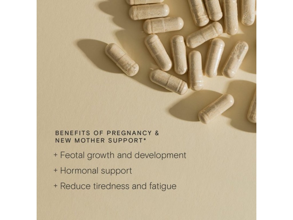 Obsažený vitamín B6 přispívá k hormonální rovnováze a zmírňuje případné těhotenské nevolnosti. Dále obsažený chrom přispívá k udržení optimální hladiny cukru v krvi. Komplex obsažených účinných látek, vitamínů a minerálů přispívá k normálnímu vývoji mozku, očí a kognitivních funkcí plodu. Díky obsaženým vitamínům z řady B, vitamínu C a hořčíku pomáhá obnovit a udržet optimální hladinu energie a zároveň aktivně předcházet vyčerpání, které často těhotenský stav provází.