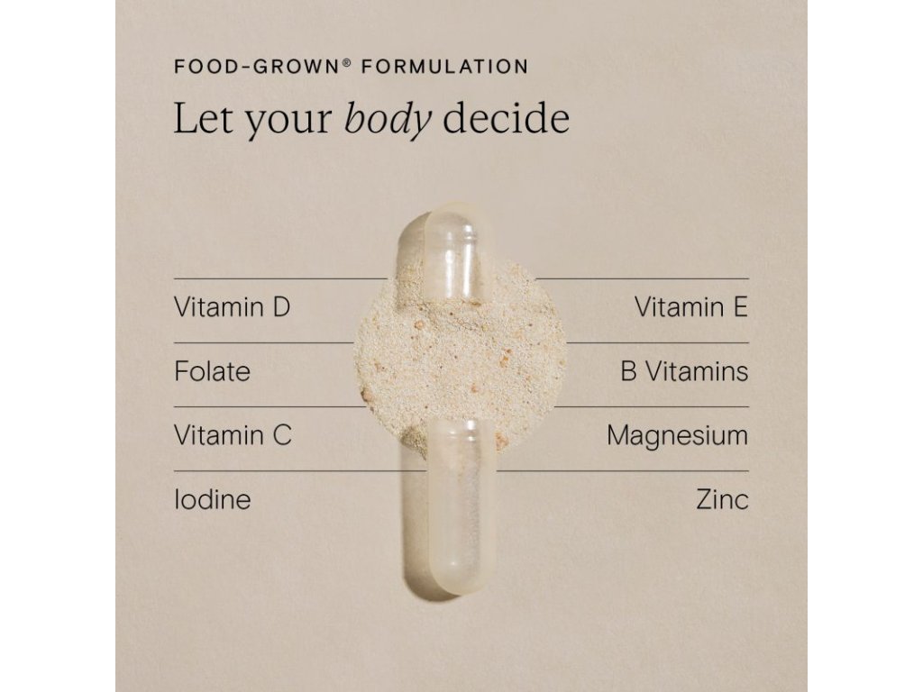 Složení: Lithothamnium (červená řasa) v prášku dodávající vápník, mořská voda dodávající hořčík, kvasnice obohacené o živiny; železo, selen, kyselinu listovou (jako přirozeně se vyskytující folát), bór, niacinamid, koenzym Q10, inositol, cholin, mangan, riboflavin, GTF chrom, biotin, vitamin B6, vitamin B12, molybden, thiamin, jód, vitamin K1, vitamin D3, rostlinnou celulózu (obal kapsle), Lactobacillus Bulgaricus obohacený o minerály; zinek, kyselinu pantotenovou, měď, vitamín C a bioflavonoidy obsažené v citrusové dužině, beta-karoten obsažený v mrkvové dužině, žlutý hrách (Pisum Sativum) poskytující vitamín E, kyselinu alfa-lipoovou, prášek z hnědé rýže zahřívané.