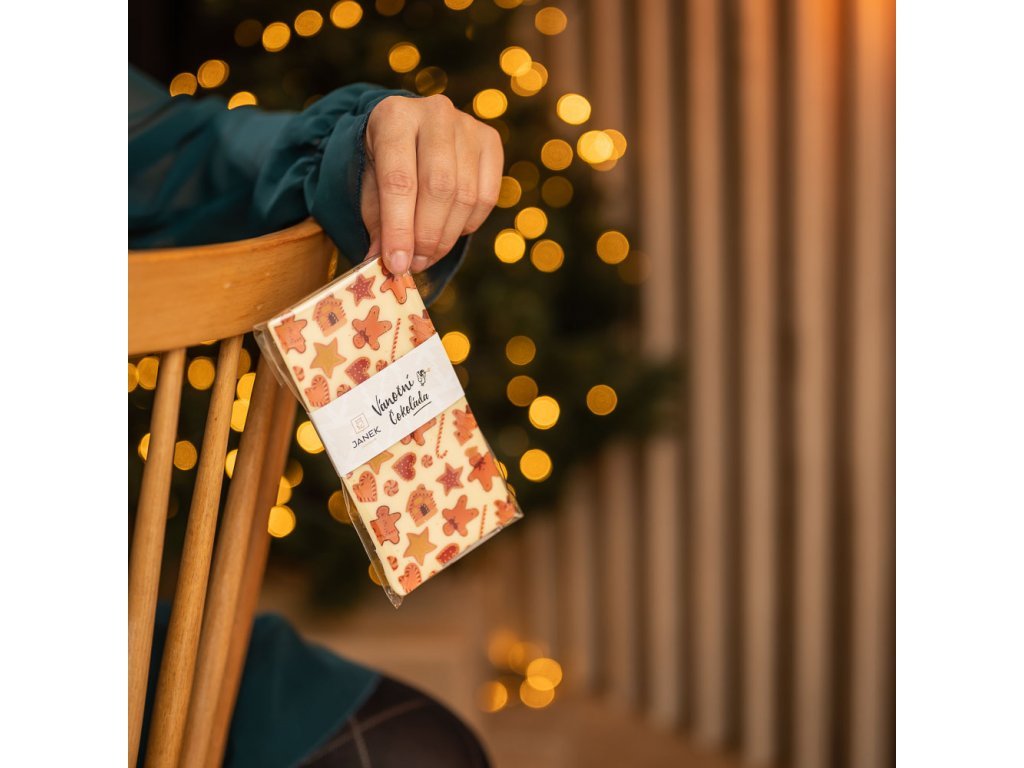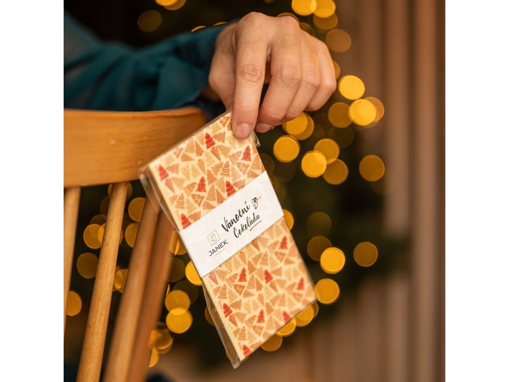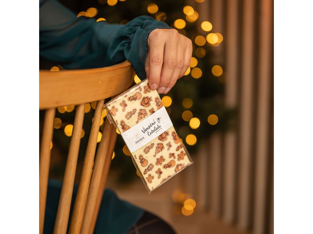 Bílá vanilková čokoládka od Janka s vánočním potiskem.